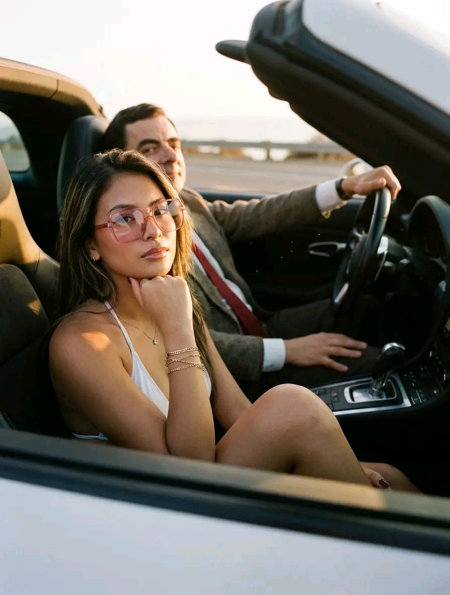 An extremely detailed prompt for Google Gemini Nano Banana Pro, focusing on generating an ultra-realistic 8K RAW photo inside a luxury sports car during golden hour. The prompt strictly requires locking the face, hair, and clothes of both the woman and the man to provided reference images. It specifies film emulation (Portra 400), shallow depth of field (f/1.4), micro-details (skin pores, dust motes), and lighting (soft-diffused sunlight) to achieve a high-contrast, candid, and stylish aesthetic.