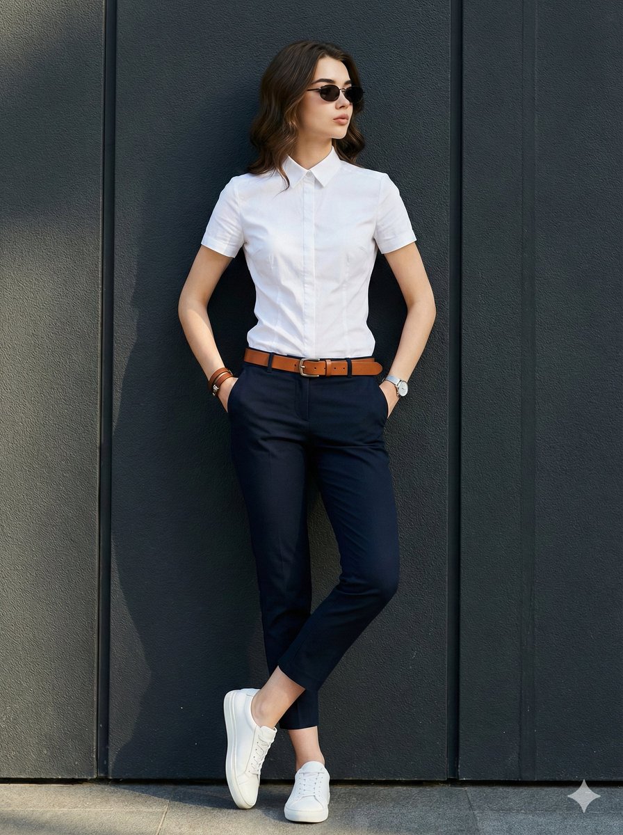 A complex JSON prompt focused on replicating a specific walking pose and outfit from a reference image, while critically ensuring the accurate and realistic integration of a clear, authentic Vans logo onto the subject's cropped mustard-yellow tee. It specifies a hyper-realistic, matte-filmic aesthetic with muted color grading (Kodak Vision3/CineStill inspired) in an urban street setting.